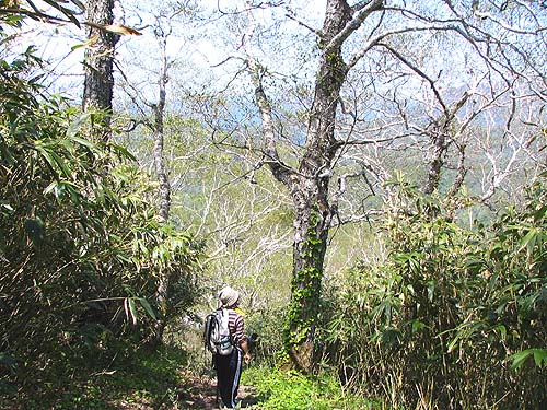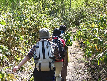 さて、さて、、いままではハイキング気分の林道・・ ここから、ちょいと、、段々、、と・・登りもきつくなりますよぉ〜〜 先頭は、MURA@ショッカーさんが、ウドを背負って行きます このお天気、、段々と登山道も傾斜もきつくなり〜〜 太陽の熱も感じはじめます〜〜 暑い〜〜暑い〜〜〜